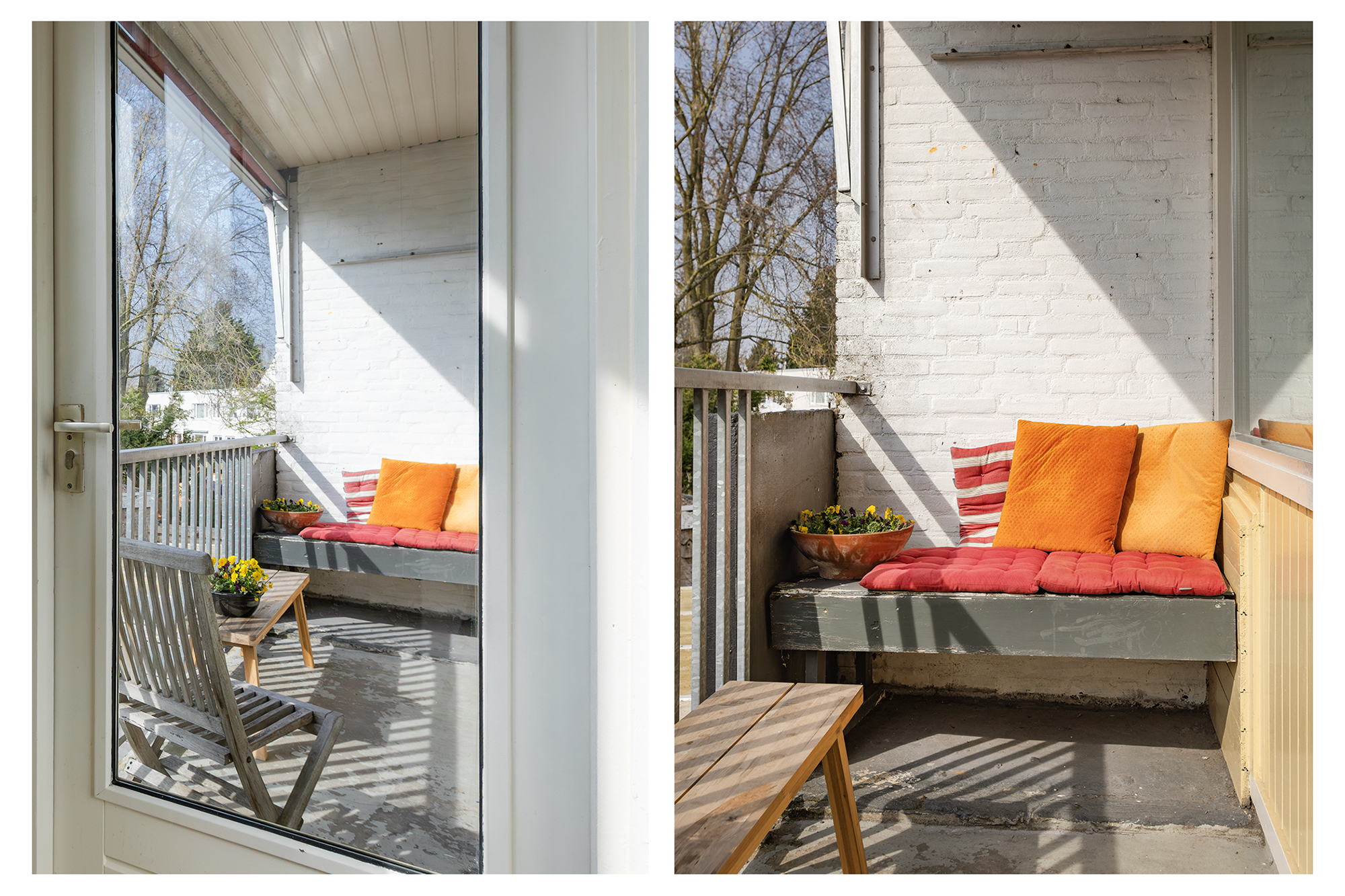 The balcony of approximately 4 m² faces southwest, allowing you to enjoy the afternoon and evening sun. A pleasant spot to sit outside and a great extension of the living room.