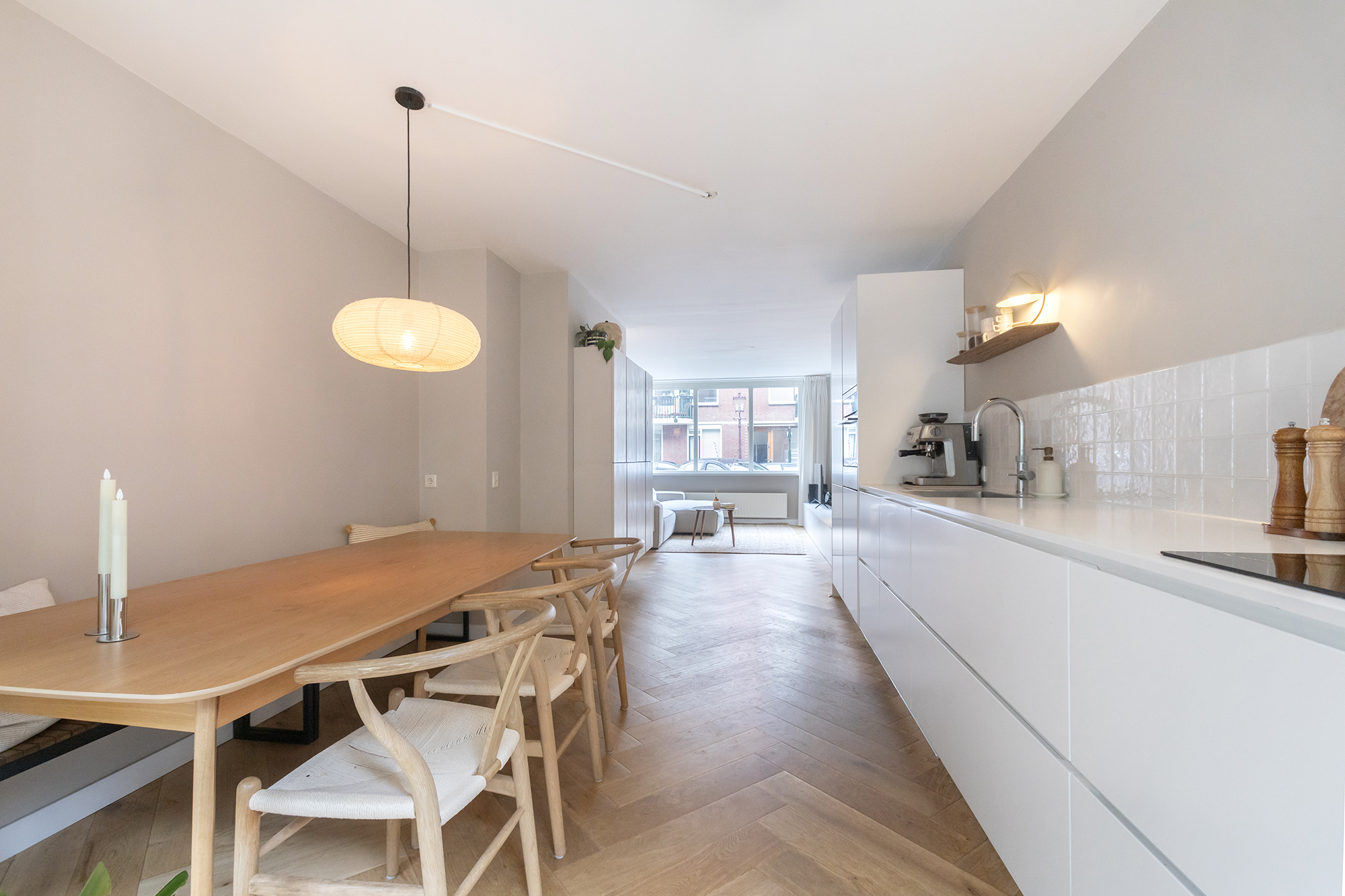 In 2021 is dit appartement compleet gerenoveerd en opnieuw ingedeeld met een luxe moderne keuken aan de achterzijde, grenzend aan de fantastische tuin. Aan de voorzijde ligt het woongedeelte waar je geniet van veel natuurlijk licht, dit is ook een fijne plek om te ontspannen. Het appartement heeft 3 slaapkamers, verschillend van grootte.
