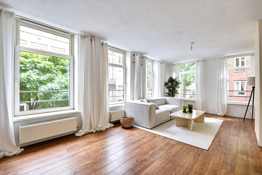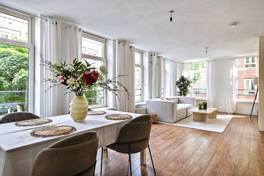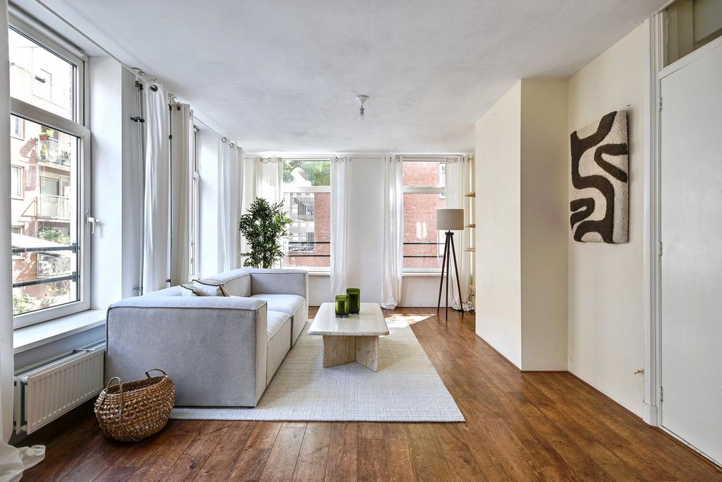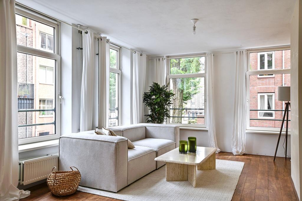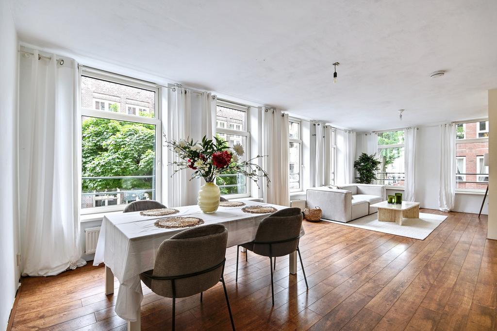 Het appartement ligt op de eerste verdieping van een klassiek Amsterdams bouwblok.