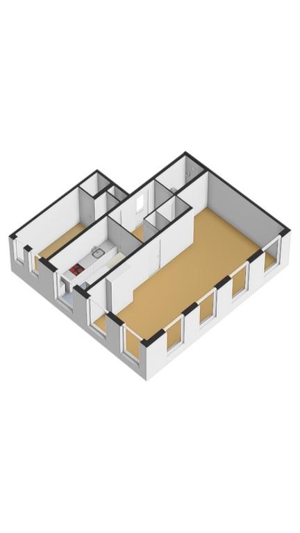 De aparte keuken is netjes en functioneel en biedt ook volop mogelijkheden. Door deze naar de royale woonkamer te verplaatsen, ontstaat er ruimte voor bijvoorbeeld een tweede slaapkamer of fijne thuiswerkplek.
