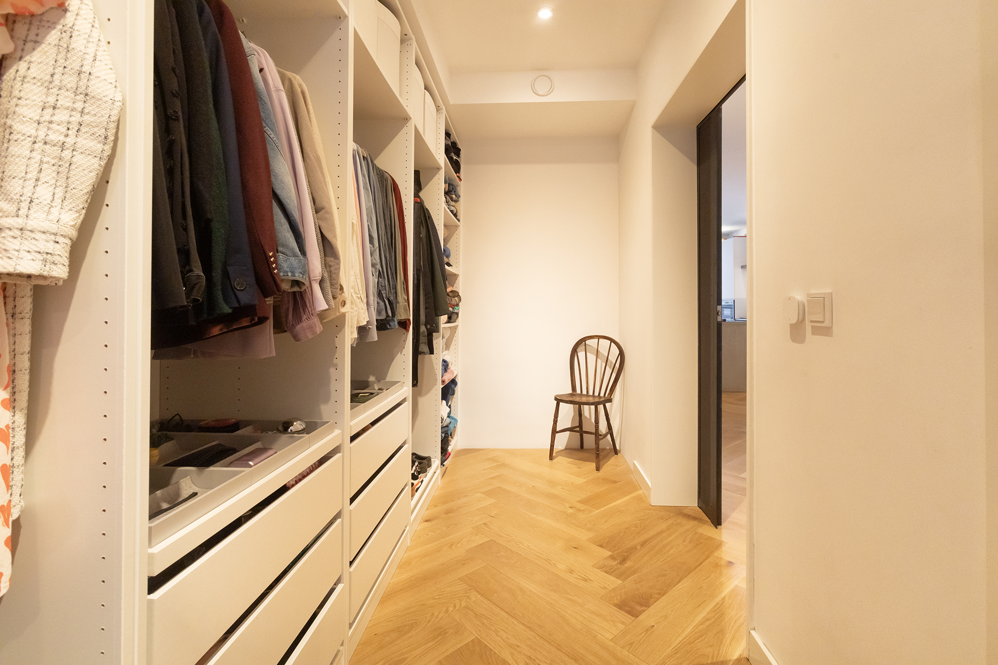 At the rear of the apartment is the quiet bedroom, which you enter through the walk-in closet. It’s very easy to create a second bedroom, it’s now been used as the lounge area.