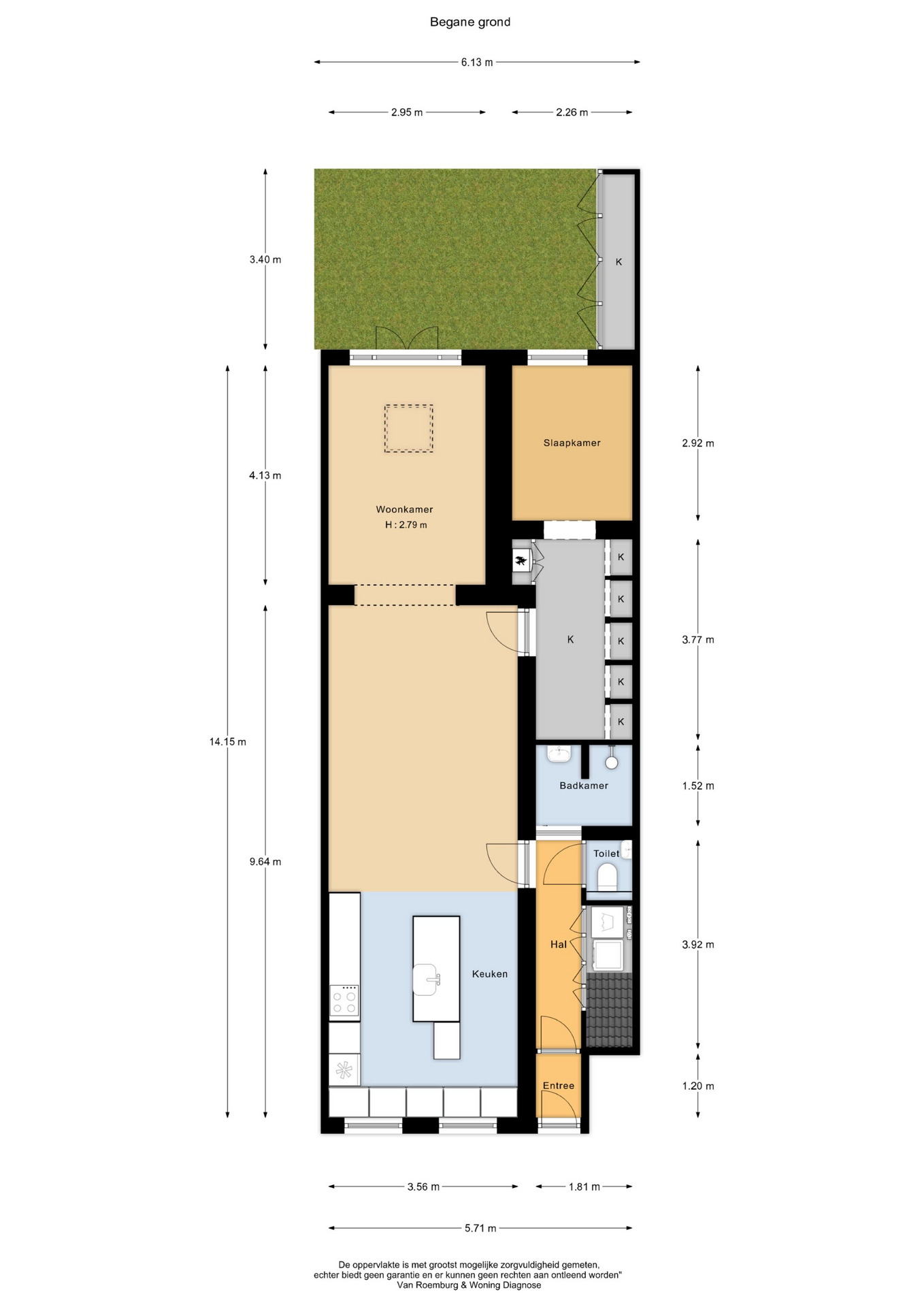Het appartement heeft een woonoppervlakte van 79 m²; dit is exclusief de berging en de tuin. De woning is door een extern bureau ingemeten conform NEN2580.