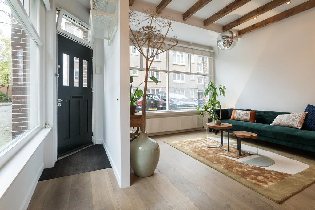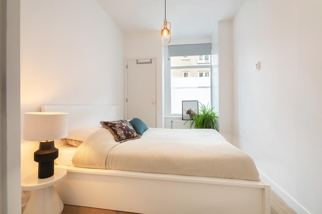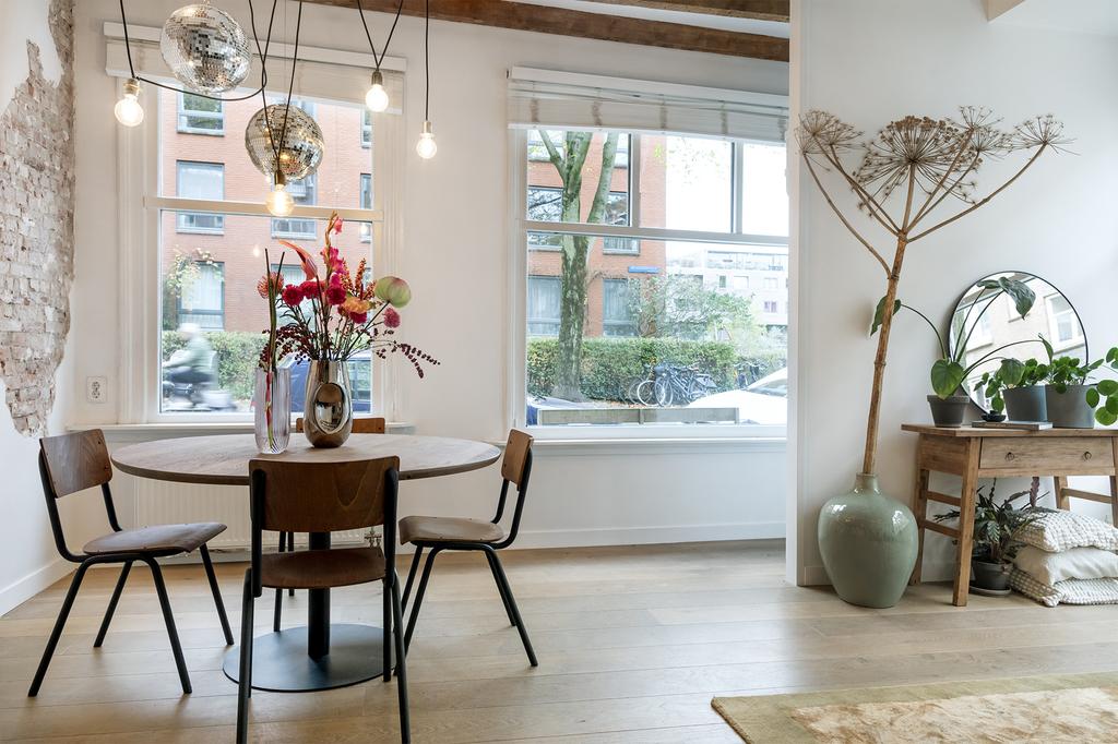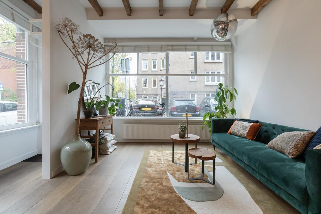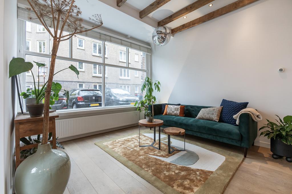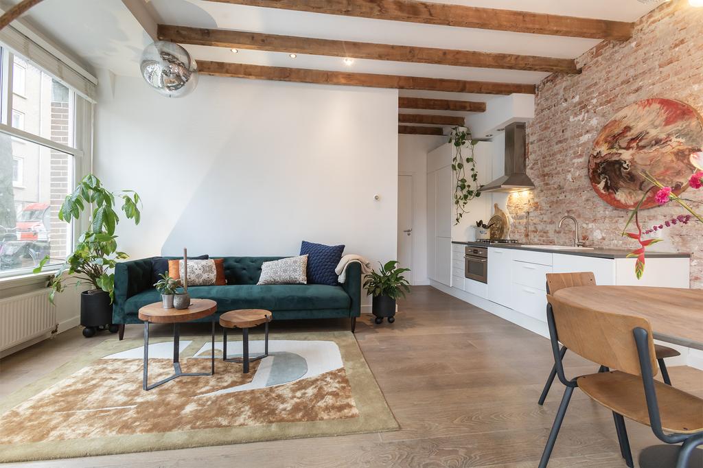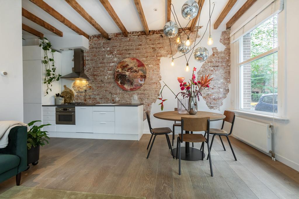 Bij binnenkomst stap je in een kleine hal met een kapstok. Vanuit hier bereik je direct de lichte woonkamer met open keuken. Dankzij de hoekligging profiteer je van extra lichtinval en een gezellig uitzicht op de straat. De houten vloer in het hele appartement geeft de woning een warme uitstraling. En als de zon schijnt? Dan kun je heerlijk buiten zitten voor de deur, zet je eigen bankje of bistrosetje buiten en geniet van het Amsterdamse leven.