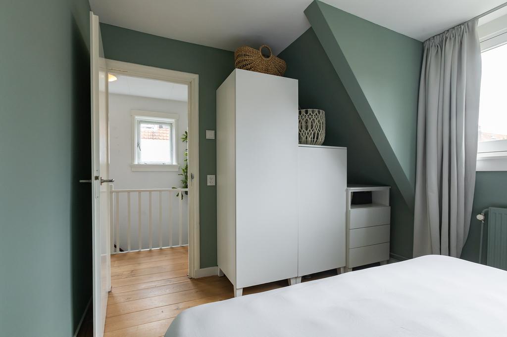 Op de eerste verdieping vind je twee fijne slaapkamers en een mooie moderne badkamer met inloopdouche en toilet. Een tweede separaat toilet bevindt zich op de overloop. De ruime kamers bieden alle mogelijkheden voor een rustige nachtrust of een stijlvolle werkplek. Via de vlizotrap bereik je de zolderverdieping, waar genoeg ruimte is voor een tweepersoonsbed of extra opbergruimte. Deze flexibele indeling maakt het huis ideaal voor zowel gezinnen als stellen.